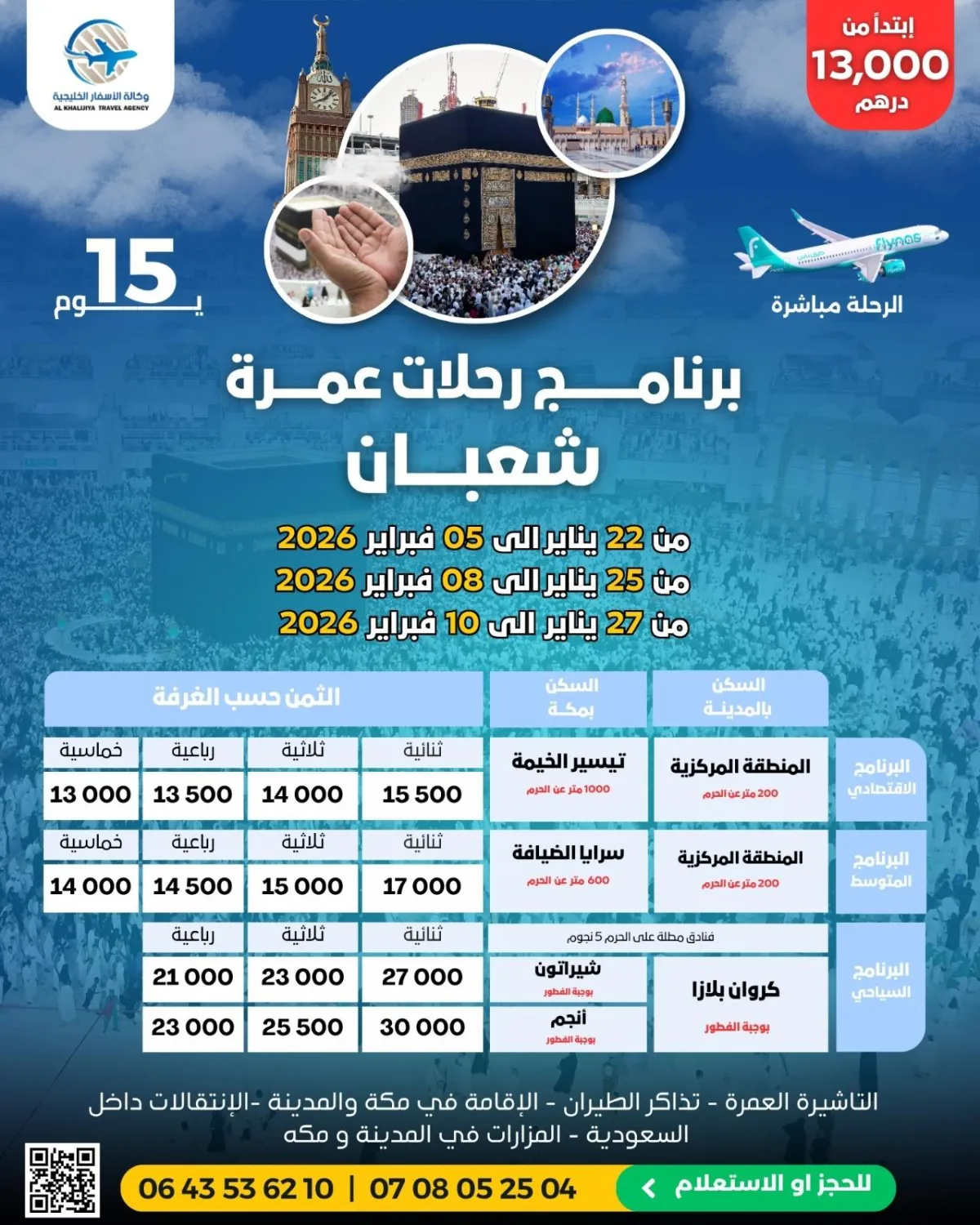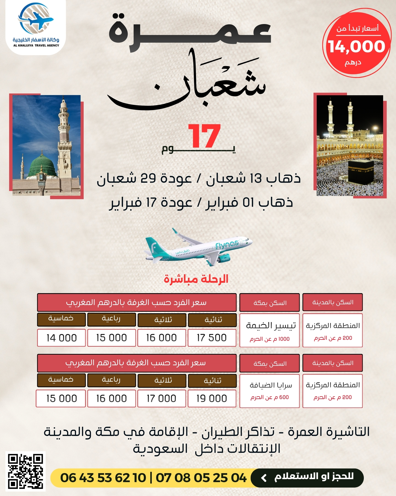 في وكالة أسفار الخليجية نوفر لك تنظيمًا احترافيًا وخدمات موثوقة تمنحك الراحة والطمأنينة طوال رحلتك إلى الحرمين، من لحظة الحجز إلى إتمام المناسك. هدفنا أن تعيش تجربة روحانية سهلة، هادئة، وخالية من أي تعقيدات.ن